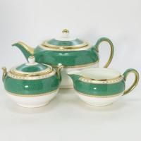 ウェッジウッド ユーランダーパウダーグリーンのティーポットとシュガーポットとクリーマーになります。 ティーポット:高さ 13.5cm(蓋持ち手部含む) シュガーポット:高さ 9.5cm(蓋持ち手部含む) クリーマー:高さ 6cm(持ち手部含む)