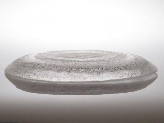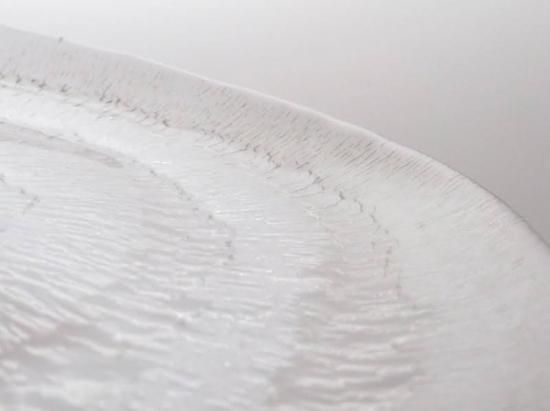 揺らぎのあるラインが放射状に広がったデザインで、光にかざすととても美しく輝きます。
