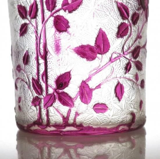 今では製造されていない被せガラスのエッチングが大変特徴的です。
